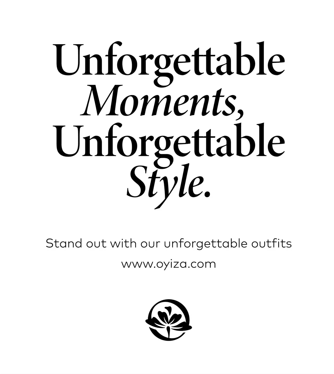 The lily trapped in the brand's initial letter "O" symbolizes elegance, purity and beauty, reinforces Oyiza's commitment to creating timeless and refined wears.