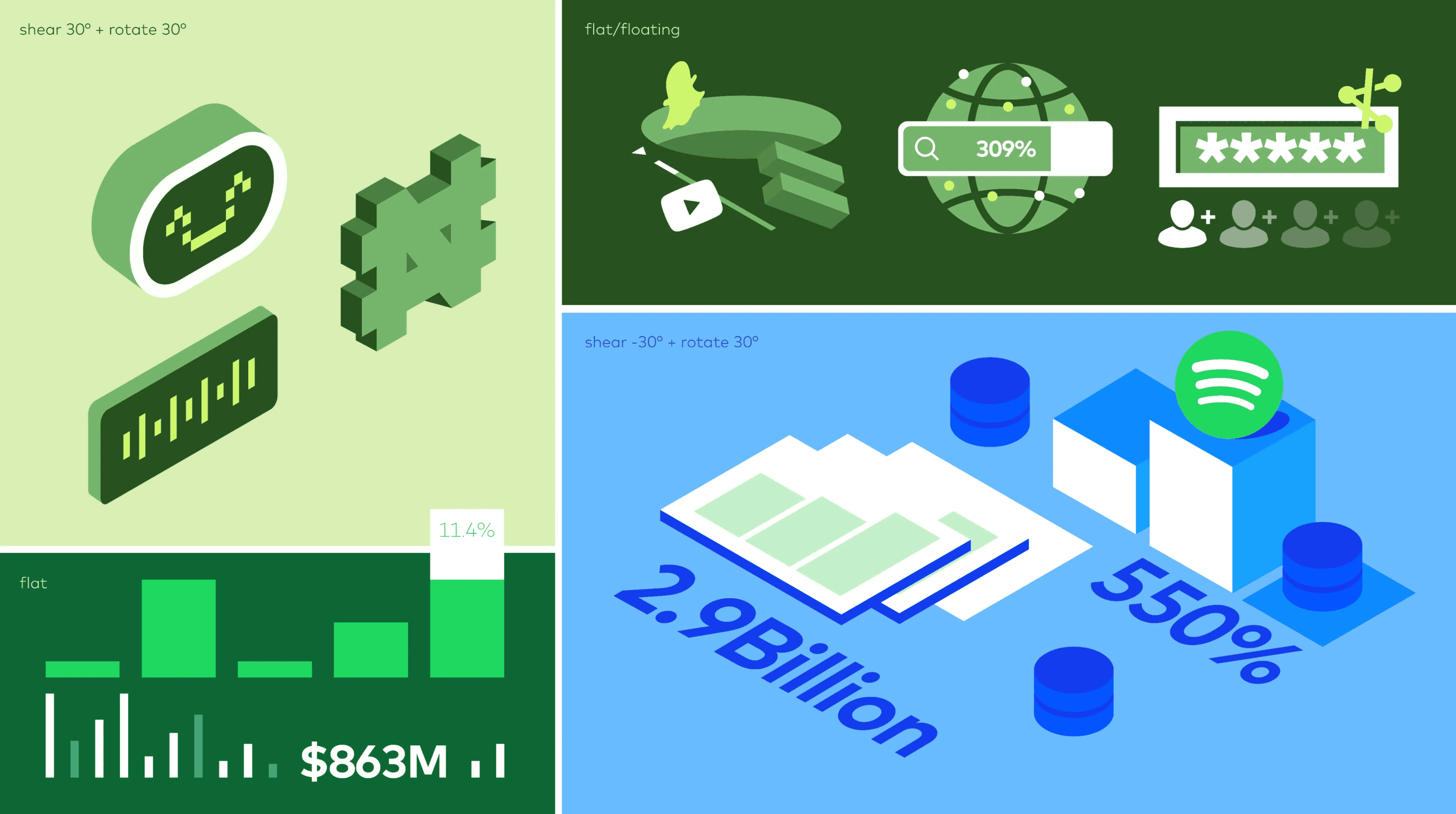 We designed flat, floating, isometric illustrations and infographics to simplify complex data while maintaining a visually appealing and professional aesthetic. Bold colors, clean typography and dynamic charts work together to highlight key insights, ensuring the fast-paced nature of the industry is reflected. This approach ensures the information is engaging, digestible and retains a modern, innovative feel that resonates with the target audience.